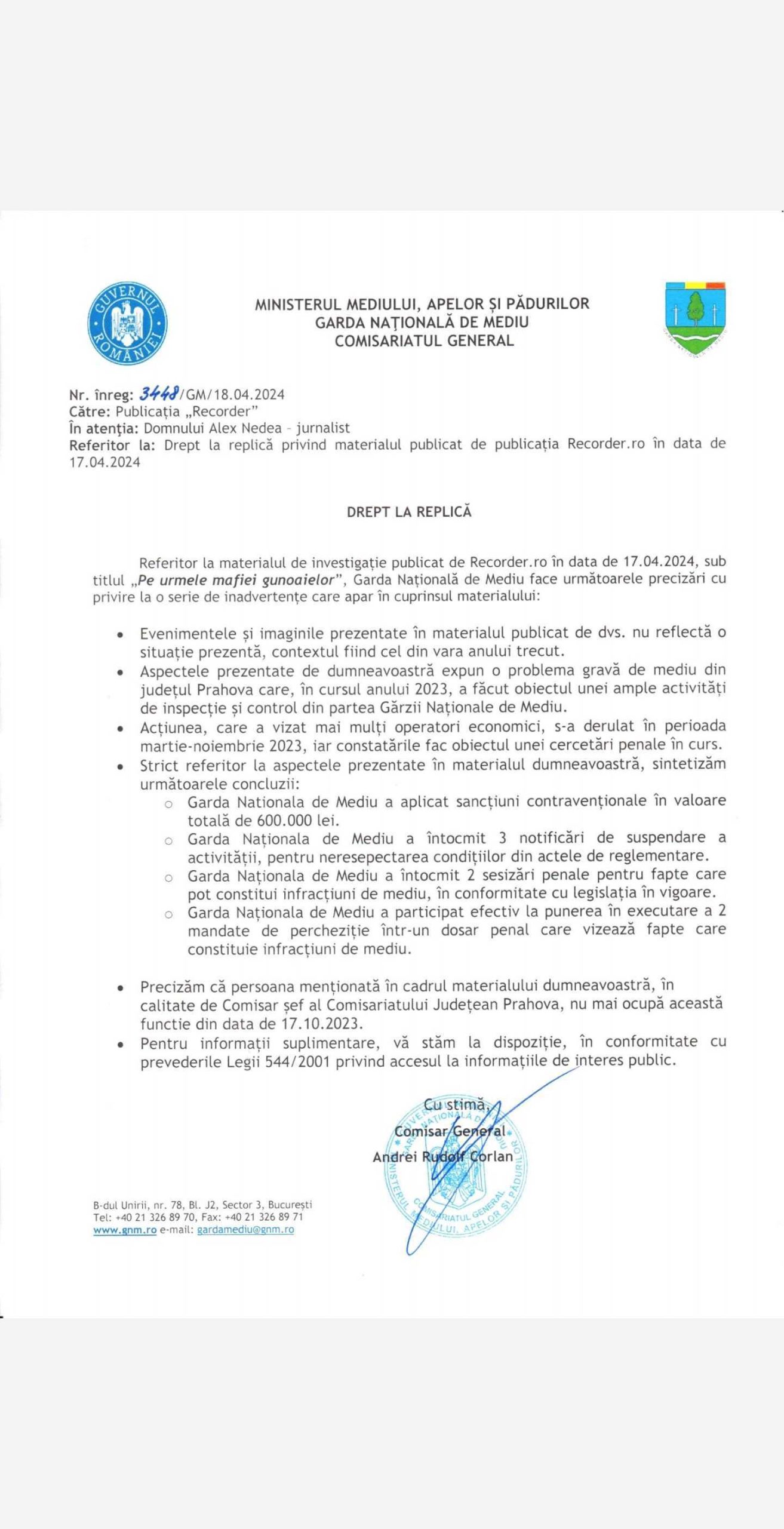 După publicarea materialului, Garda Națională de Mediu a venit cu o serie de precizări, care poti fi citite aici.